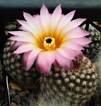 Прекрасные светло-розовые цветки с золотистым зевом.